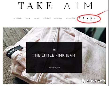 在你的網(wǎng)站顯眼的位置放置你已有的社交渠道,你要告訴你的客戶,原來(lái)你也已經(jīng)其他的社交渠道方面,開設(shè)了社交賬號(hào),這樣他們就能直接的點(diǎn)擊鏈接到你的其他社交平臺(tái)上,也會(huì)更直接的和你在社交上進(jìn)行互動(dòng)。如下圖所示: